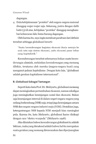pula. Karena itu, kata Mubyarto, globalisasi harus disikapi