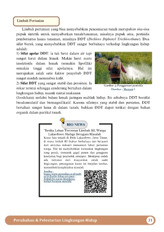 (foodchain) melalui bahan lemak jaringan mahluk hidup. Itu sebabnya DDT bersifat