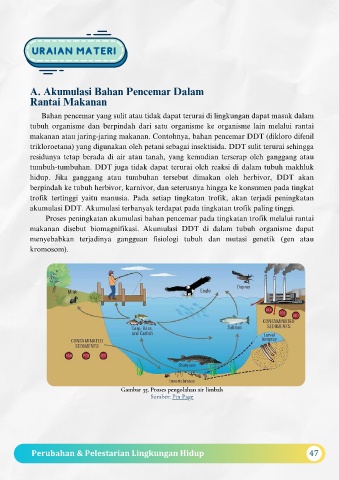 makanan atau jaring-jaring makanan. Contohnya, bahan pencemar DDT (dikloro difenil