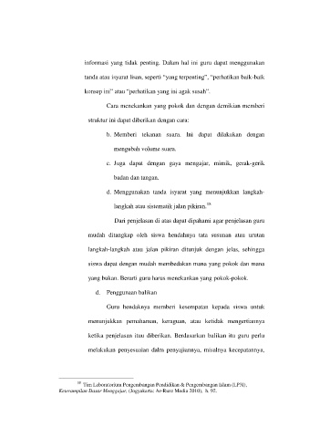 informasi yang tidak penting. Dalam hal ini guru dapat menggunakan