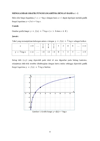 Sifat-sifat fungsi logaritma : → log dengan basis a > 1 dapat dipelajari melalui grafik