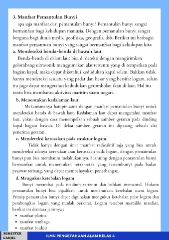 mendeteksi benda di bawah laut. Kedalaman laut dapat mengetahui manfaat