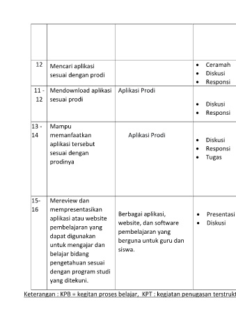 Keterangan : KPB = kegitan proses belajar, KPT : kegiatan penugasan terstruktur, KM ; Kegiatan: