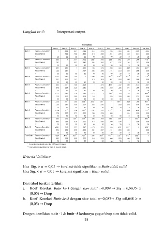 Jika Sig. > = 0,05 → korelasi tidak signifikan = Butir tidak valid.