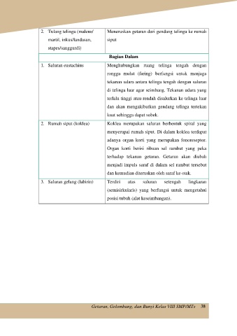 2. Tulang telinga (maleus/ Meneruskan getaran dari gendang telinga ke rumah