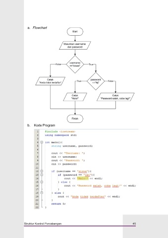 a. Flowchart b. Kode Program Struktur Kontrol Percabangan 45