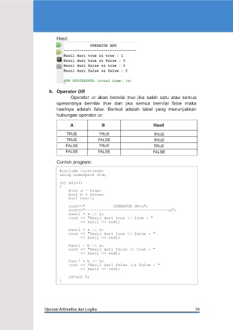 hasilnya adalah false. Berikut adalah tabel yang menunjukkan