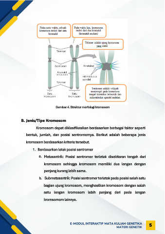 bentuk, jumlah, dan posisi sentromernya. Berikut adalah beberapa jenis