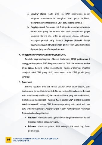 a. Leading strand Pada untai ini, DNA polimerase dapat