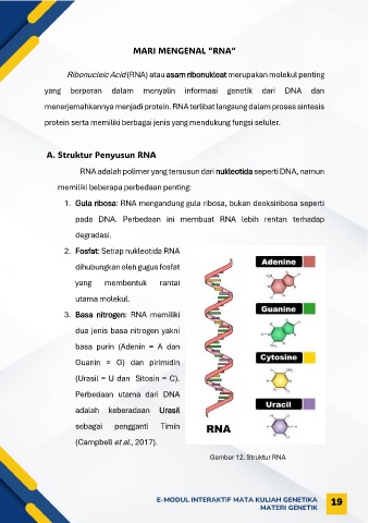 1. Gula ribosa: RNA mengandung gula ribosa, bukan deoksiribosa seperti