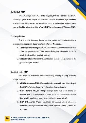 proses sintesis protein. Beberapa fungsi utama RNA adalah: