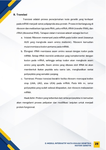 pada mRNA menjadi rantai polipeptida atau protein. Proses ini berlangsung di