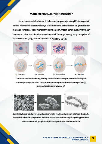 dalam nukleus, yang disebut kromatin (Klug et al ., 2012).