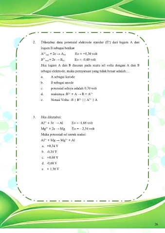 2. Diketahui data potensial elektrode standar (E ) dari logam A dan
