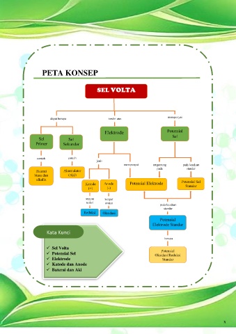 PETA KONSEP Kata Kunci Sel Volta Potensial Sel Elektrode Katode dan Anode Baterai dan Aki x