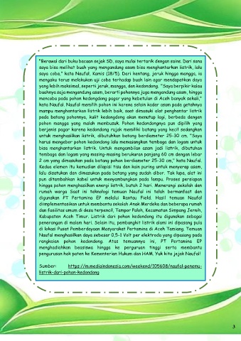 Kabupaten Aceh Timur. Listrik dari pohon kedondong itu digunakan sebagai