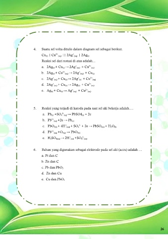 6. Bahan yang digunakan sebagai elektrode pada sel aki (accu) adalah …