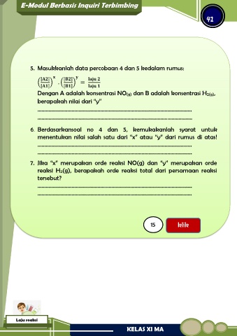 7. Jika “x” merupakan orde reaksi NO(g) dan “y” merupakan orde
