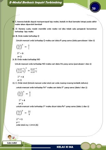 18. C. karena katalis dapat mempercepat laju reaksi, katalis ini ikut bereaksi tetapi pada akhir