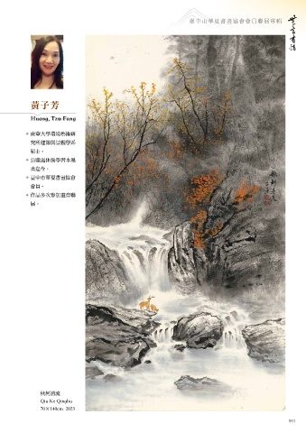 臺中市華夏書畫協會會員聯展專輯 黃子芳 Huang, Tzu-Fang یശɽኪᐑྤᖵஔ Ӻהܔጘၾ౻ᝈኪӻ ၂ɻf ʮᔖৗ;ܝኪ୦˥ኈ ԙʦf ၽʕ̹ശࢀࣣึ ึࡰf Ъۜεϣਞ̋ึᑌ ࢝f ߇ݚݴ Qiu Ke Qingliu 70Ò140cm 2023 100 101