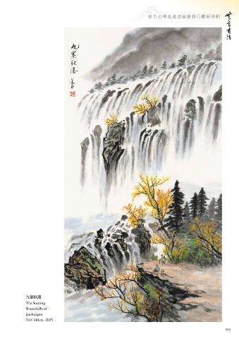臺中市華夏書畫協會會員聯展專輯 ɘ߇ᓬ The Soaring Waterfalls of jiuzhaigou 70Ò140cm 2025 104 105
