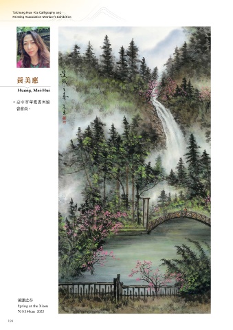 Taichung Hua -Xia Calligraphy and Painting Association Member's Exhibition 黃美惠 Huang, Mei-Hui ၽʕ̹ശࢀࣣ ึึࡰf ᎘ʘ݆ Spring at the Xitou 70Ò140cm 2025 106 107