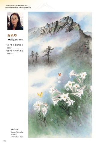 Taichung Hua -Xia Calligraphy and Painting Association Member's Exhibition 黃淑珍 Huang, Shu-Zhen ၽʕ̹ശࢀࣣึ ึࡰf ၽʕ̹ڡอ˖ᖵኪ ึึࡰf ᘆ౻ʘဂ Song of beautiful scenery 136Ò69cm 2024 108 109