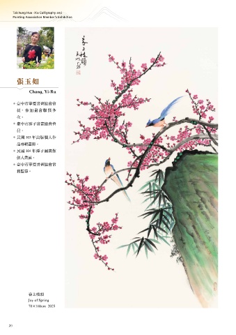 Taichung Hua -Xia Calligraphy and Painting Association Member's Exhibition 張玉如 Chang, Yi-Ru ၽʕ̹ശࢀࣣึึ ࡰdਞ̋ึᑌ࢝ε ϣf ၽʕ̹ᆐɿࣣึึ ࡰf ͏ 103 ϋ̈وࡈɛЪ ۜਖ਼፨̅f ͏ 104 ϋᆐɿྡࣣ ࡈɛ࢝f ၽʕ̹ശࢀࣣึ੬ ਕ္ԫf ݆ɪ،᎘ Joy of Spring 70Ò140cm 2025 20 21