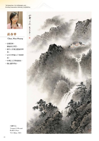 Taichung Hua -Xia Calligraphy and Painting Association Member's Exhibition 黃春華 Chun, Hua-Huang ఃฌࣣf ᗴঐ͛ኪ୦f ၽʕ̹ശࢀࣣึଣ ԫf ၽʕ̹ശᖵɾɿึึ ࡰf ʕ̚˖οኪึึࡰf ᎇːึึࡰf ʆ᎑˚ڗ Tranquil Hills and Endless Days 70Ò140cm 2023 28 29