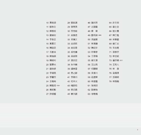 23 李麗芬 41 李素月 59 莊連東 77 張瑋翎