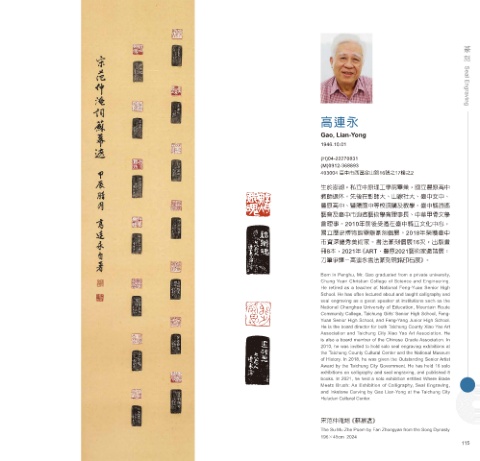 市資深優秀美術家。書法篆刻個展16次,出版畫