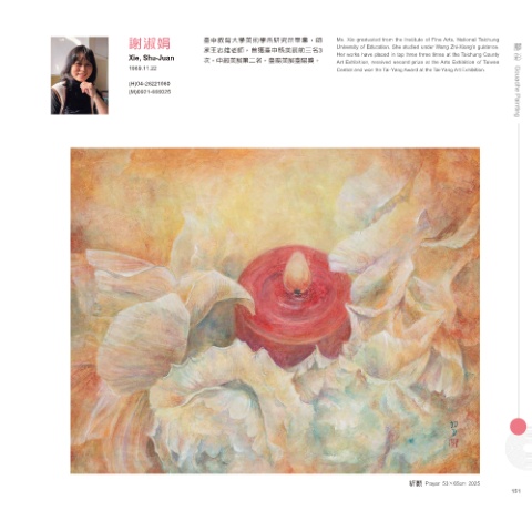 Xie, Shu-Juan 次,中部美展第二名,臺陽美展臺陽獎。 Her works have placed in top three three times at the Taichung County