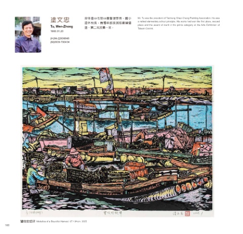 Tu, Wen-Zhong 選、第二名及第一名。 place and the award of merit in the prints category at the Arts Exhibition of