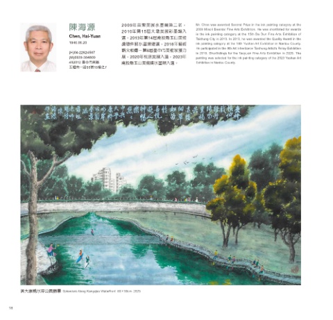 Chen, Hai-Yuan 選,2013年第14屆南投縣玉山美術 in the ink painting category at the 15th Da Dun Fine Arts Exhibition of