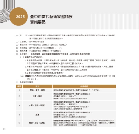 臺中市工藝師之本市藝術家;或曾參與「臺中市美術家接力展」之展出者。