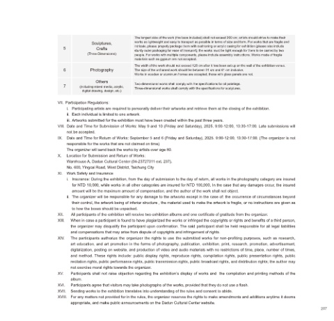 XV. Participants shall not raise objection regarding the exhibition’s display of works and the compilation and printing methods of the