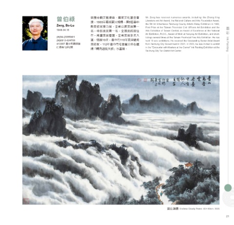 413007 臺中市霧峰區 美術家,112年臺中市屯區藝文中心邀 from Taichung City Government in 2021. In 2023, he was invited to exhibit Ink Painting