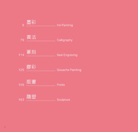 墨彩 8 Ink Painting 書法 79 Calligraphy 篆刻 114 Seal Engraving 膠彩 125 Gouache Painting 版畫 159 Prints 雕塑 163 Sculpture 6