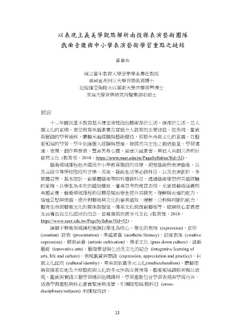 類文化的累積,更是陶育美感素養及實施全人教育的主要途徑。從表現、鑑賞