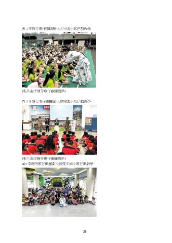 圖 4 李靜芳歌仔戲團彰化大竹國小歌仔戲教學 圖 6 李靜芳歌仔戲團南投縣雙冬國小歌仔戲教學 (相片由李靜芳歌仔戲團提供) 圖 5 李靜芳歌仔戲團彰化聯興國小歌仔戲教學 (相片由李靜芳歌仔戲團提供) 26