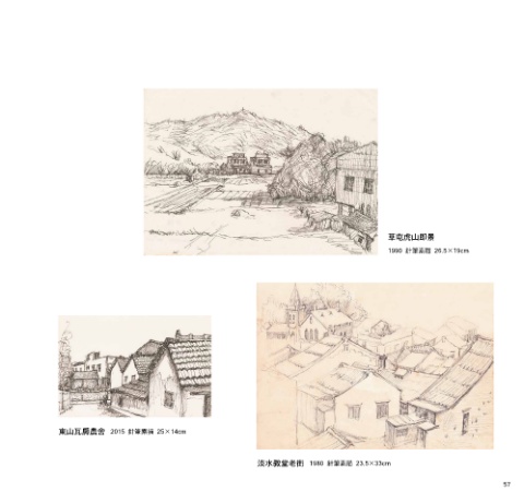 草屯虎山即景 1990 ০അ९ 26.5Ò19cm 東山瓦房農舍 2015 ০അ९ 25Ò14cm 淡水教堂老街 1980 ০അ९ 23.5Ò33cm 57