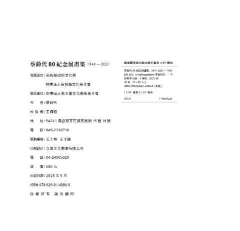 蔡鈴代 80 紀念展畫集 1944 — 2021 國家圖書館出版品預行編目 (CIP) 資料
