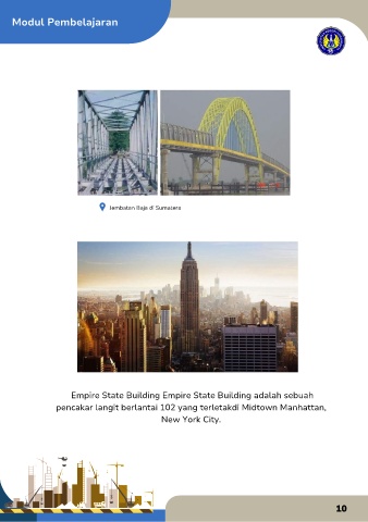 Modul Pembelajaran Jembatan Baja di Sumatera Empire State Building Empire State Building adalah sebuah pencakar langit berlantai 102 yang terletakdi Midtown Manhattan, New York City. 10