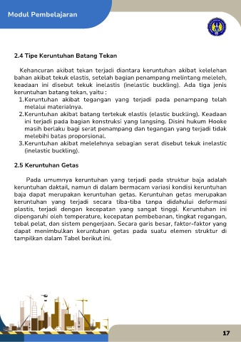 keadaan  ini  disebut  tekuk  inelastis  (inelastic  buckling).  Ada  tiga  jenis