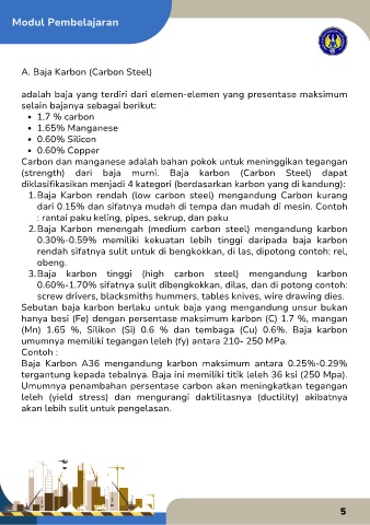 (Mn)  1.65  %,  Silikon  (Si)  0.6  %  dan  tembaga  (Cu)  0.6%.  Baja  karbon