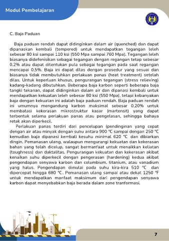 dipanaskan kembali (tempered) untuk mendapatkan tegangan leleh