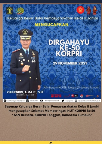 Segenap Keluarga Besar Balai Pemasyarakatan Kelas II Jambi mengucapkan Selamat Memperingati HUT KORPRI ke 50 " ASN Bersatu, KORPRI Tangguh, Indonesia Tumbuh" 24