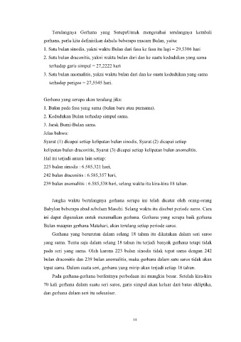 yang sama. Tentu saja dalam selang 18 tahun itu terjadi banyak gerhana tetapi tidak