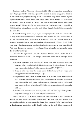 teleskop. Hal ini membenarkan bahwa permukaan bulan tidaklah rata. Pada permukaan bulan
