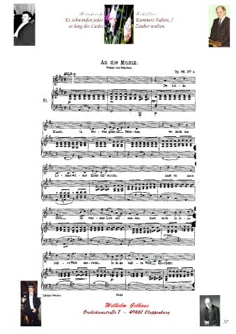 F r i e d r i c h S c h i l l e r : Es schwinden jedes Kummers Falten, / so lang des Liedes Zauber walten. Wilhelm Gelhaus Orchideenstraße 7 ~ 49661 Cloppenburg 37